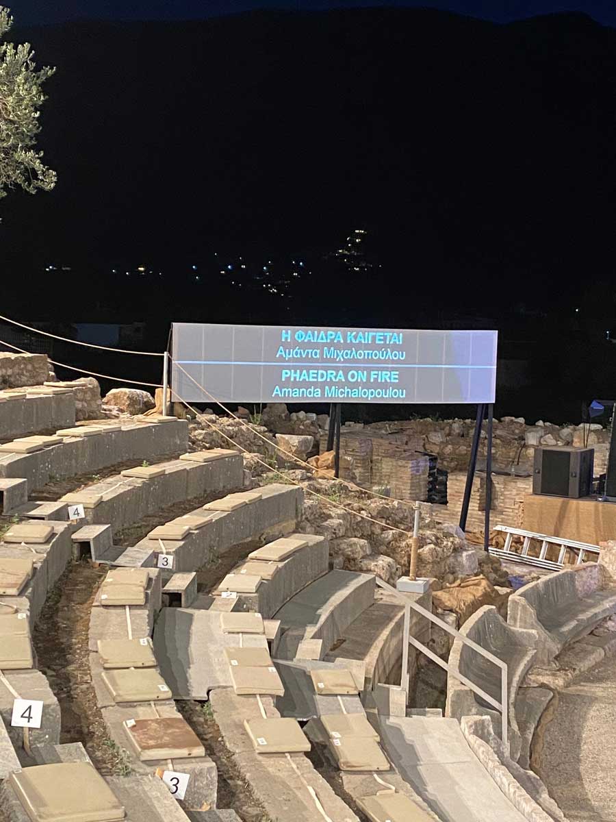 Αt 30 and 31 of July 2021 Phaedra On Fire was staged at the little theater of Ancient Epidaurus, commissioned by the Athens Epidaurus Festival, directed by Yiannis Kalavrianos, a Phaedra who wouldn’t die but who would treat her sexuality as an invitation to life.
